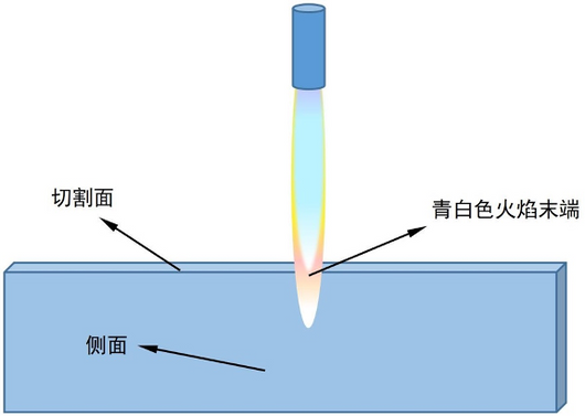 7. Use the bluish white flame end to flame polish the edge cut surface, as shown in the diagram.