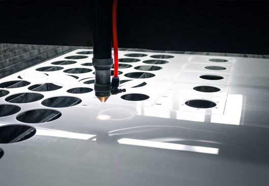 This is not necessary for standard cuts, where it is useful for precision parts. Laser beam flashback can be due to the flat support material with the DONCHAMP® acrylic, causing an optical impairment and can contaminate the lens. The alternative use of grid supports can usually prevent this. Utilizing the air assist feature on the laser will reduce the instance of flare-ups when working with flammable materials such as acrylic & wood. When cutting DONCHAMP® acrylic, we suggest to always use the nozzle with the largest diameter & if possible reduce the air assist to a max. of 0.2 bar. This will enable the DONCHAMP® acrylic sufficient time to completely cool, enabling a high gloss finish. We suggest that when using a small dameter nozzle, or if the air pressure is too high, the resulting cut edge finish will be a dull, hazy or matte due to its rapid cooling. Utilising an appropriate exhaust system is important when cutting DONCHAMP acrylic. This is mainly due to the vapours within the machine being dangerous to the operator, the laser & the environment. Good ventilation is always necessary to achieve a perfect cut, while a lack of ventilation could cause vapours to ignite & start a fire.