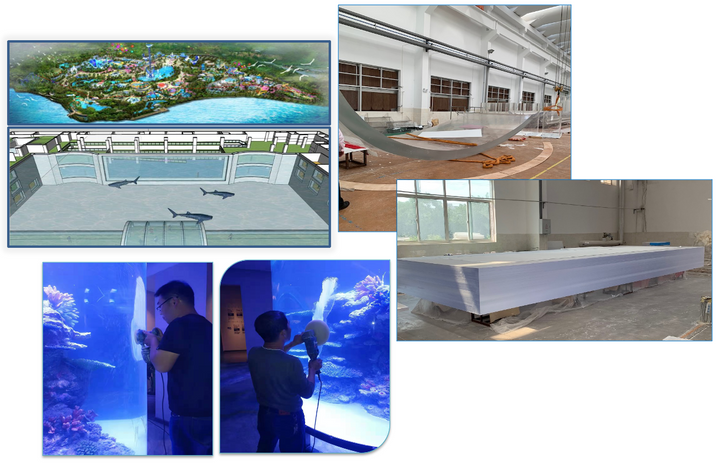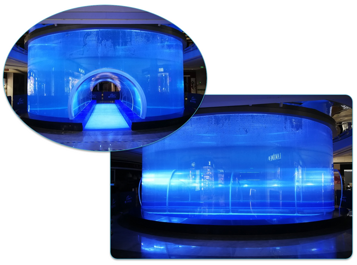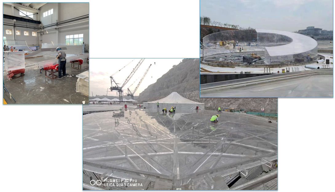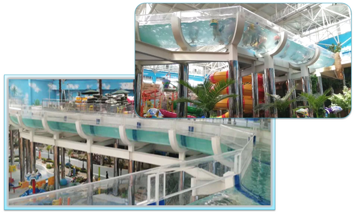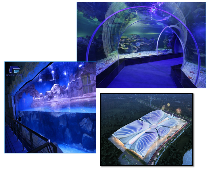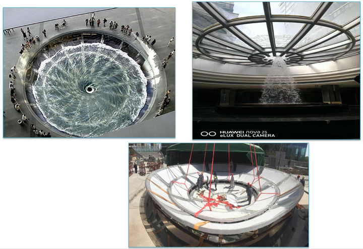 THE DONCHAMP ACRYLIC GROUP is currently building in Nanjing, China a unique greenhouse complex. This consists of a transparent DONCHAMP® Splash roof, which doubles as a water feature pond, flowing into a central transparent waterfall. The waterfall is an enclosed DONCHAMP® Splash acrylic spout, flowing seamlessly from the roof to the base pool. The spout & several panels are onsite bonded, with the highest optical seamless joins.