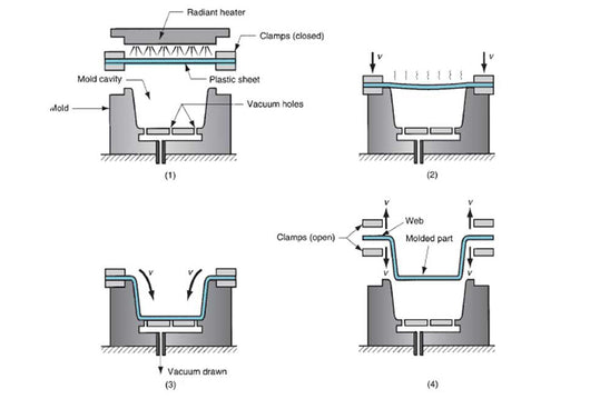 • Vacuum-forming the clamped DONCHAMP® Acrylic sheet is suggested to be heated by infrared radiation. The panels are heated & positioned over a negative mold, where the vacuum is applied to enable a high definition finished product.